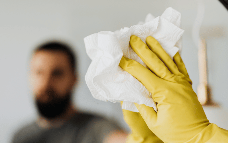 - Gently rub the mirror in circular motions to remove dirt and smudges.