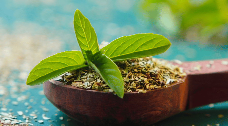 - Add the basil, mint, and eucalyptus leaves to the boiling water.