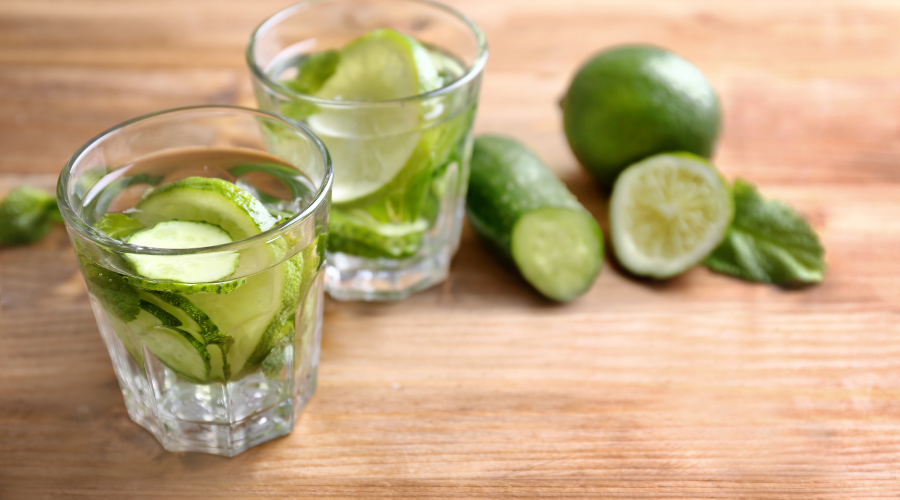 - In a blender, combine the cucumber, mint leaves, and distilled water.